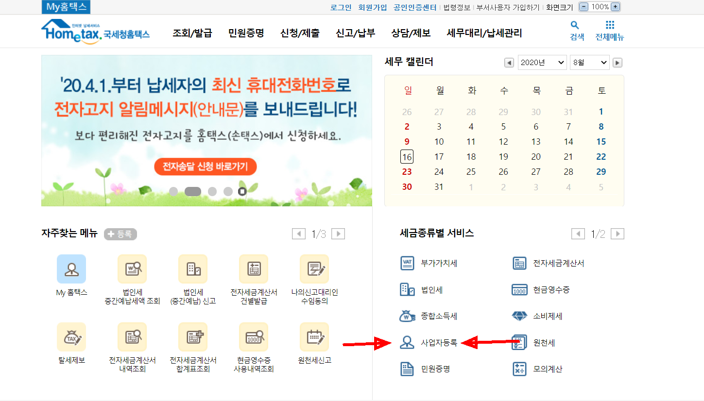 그리고 홈텍스 홈페이지를 들어가게 되면,